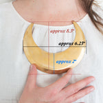 Specifications: 6.25 inches wide overall; widest center of necklace is 2 inches tall. Secure with thin, 1/8" ribbon.