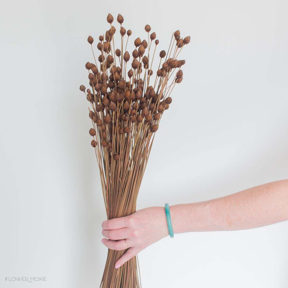 Dried Brown Pineapple Button Flowers are a small, dainty flower that works SO BEAUTIFULLY with boho, fall, or rustic wedding vibes! Dried Brown Pineapple Button Flowers are very durable, dainty, easy to work with, provide incredible texture, and can be saved as a sentimental keepsake.