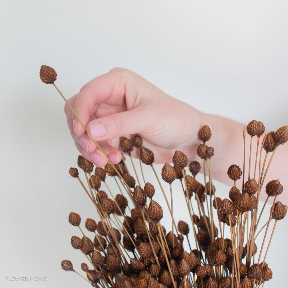Dried brown pineapple button flowers can easily be used in the following ways: