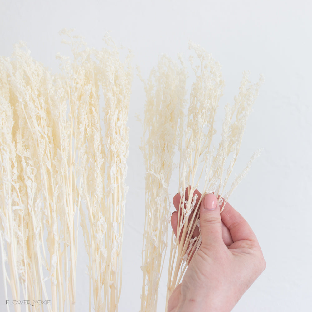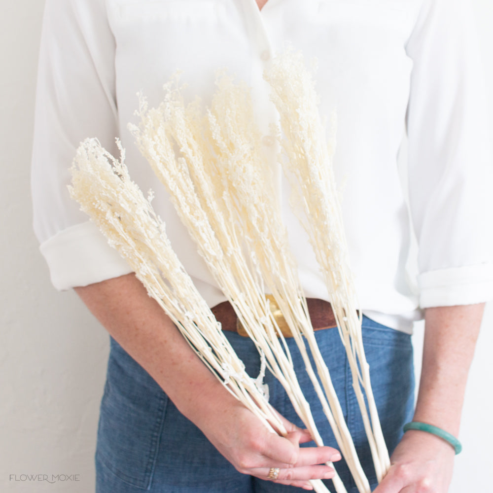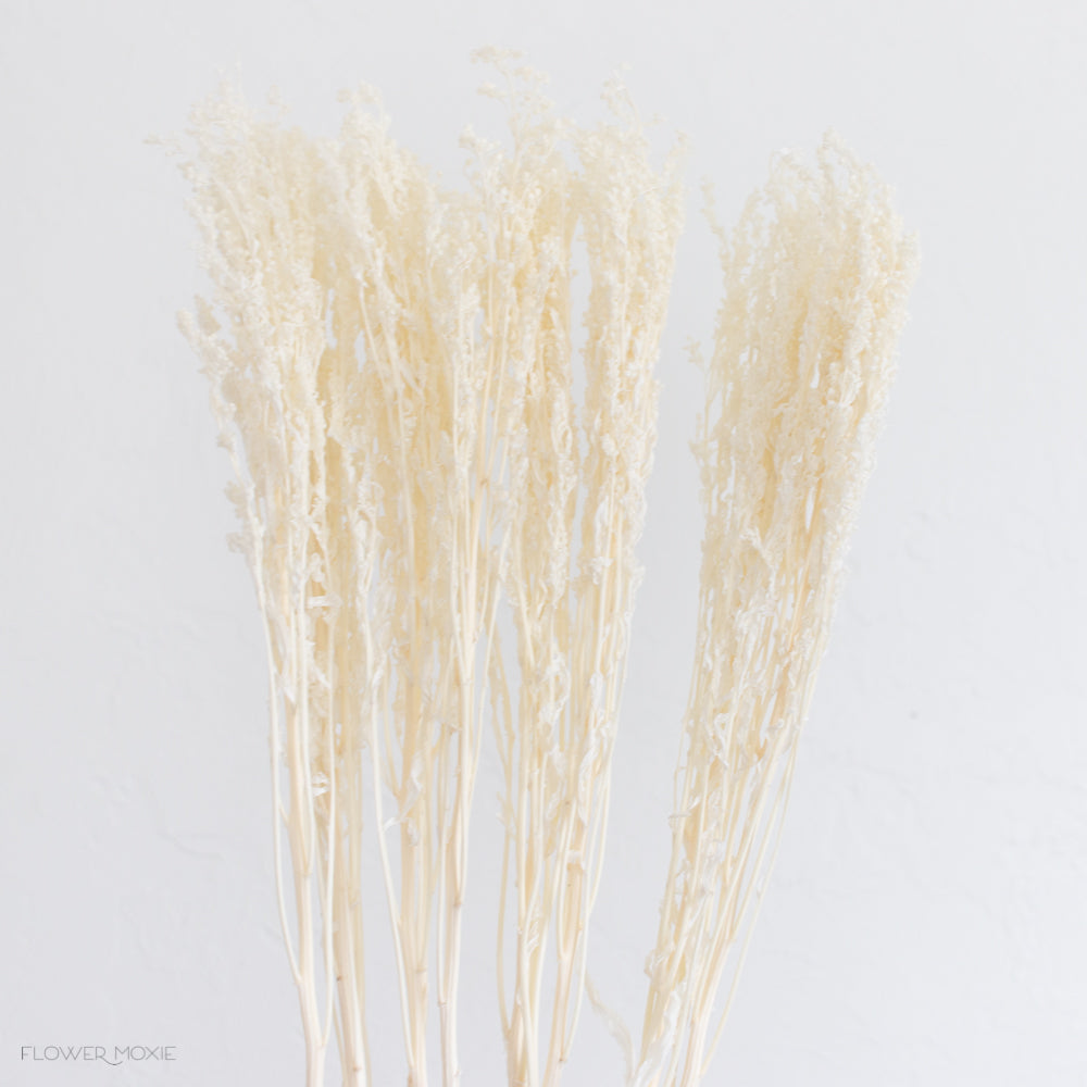 Dried Cream Solidago Goldenrod is a DIY bride's favorite for its stark white color and versatility. These dried golden rod stems are dyed to create the perfect accent for your wedding bouquets, centerpieces, and more!