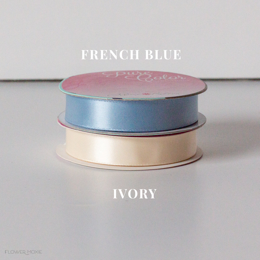 Dusty Blue 5/8" satin-faced ribbon looks beautiful with many of our DIY Collections and Packages. Use a single color or two complimentary colors to pull your design together! We recommend using approximately 3-4" of ribbon per bout or pin-on corsage.