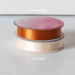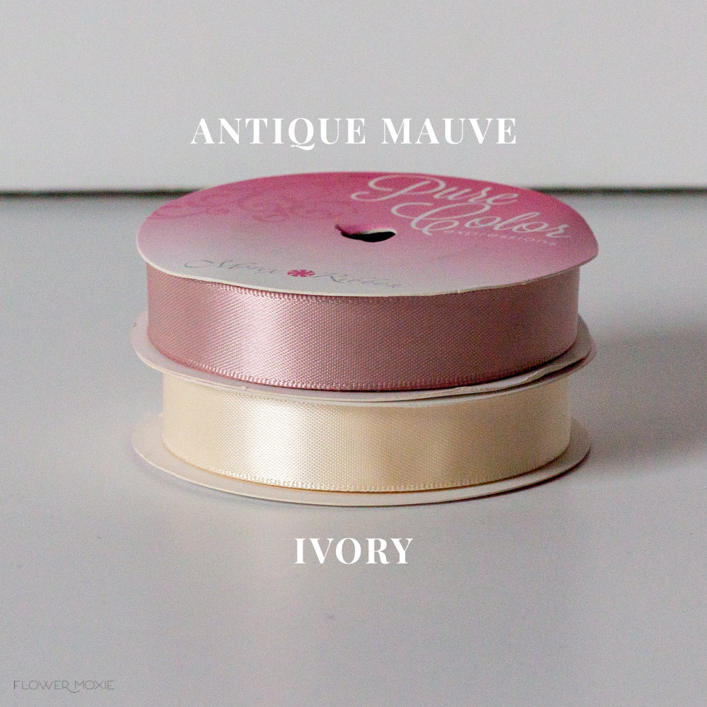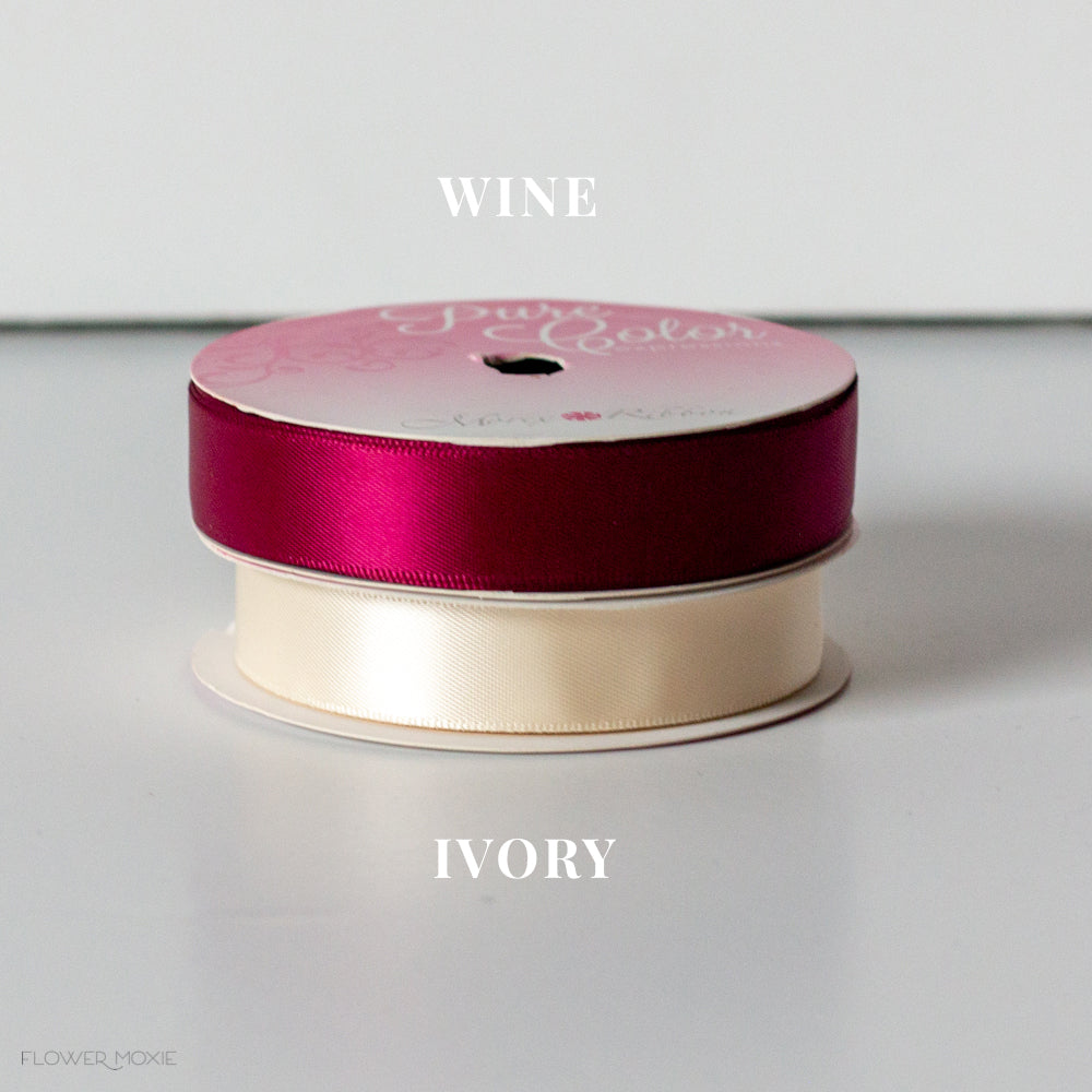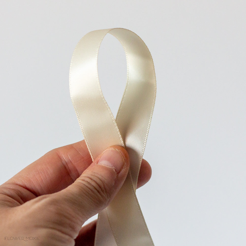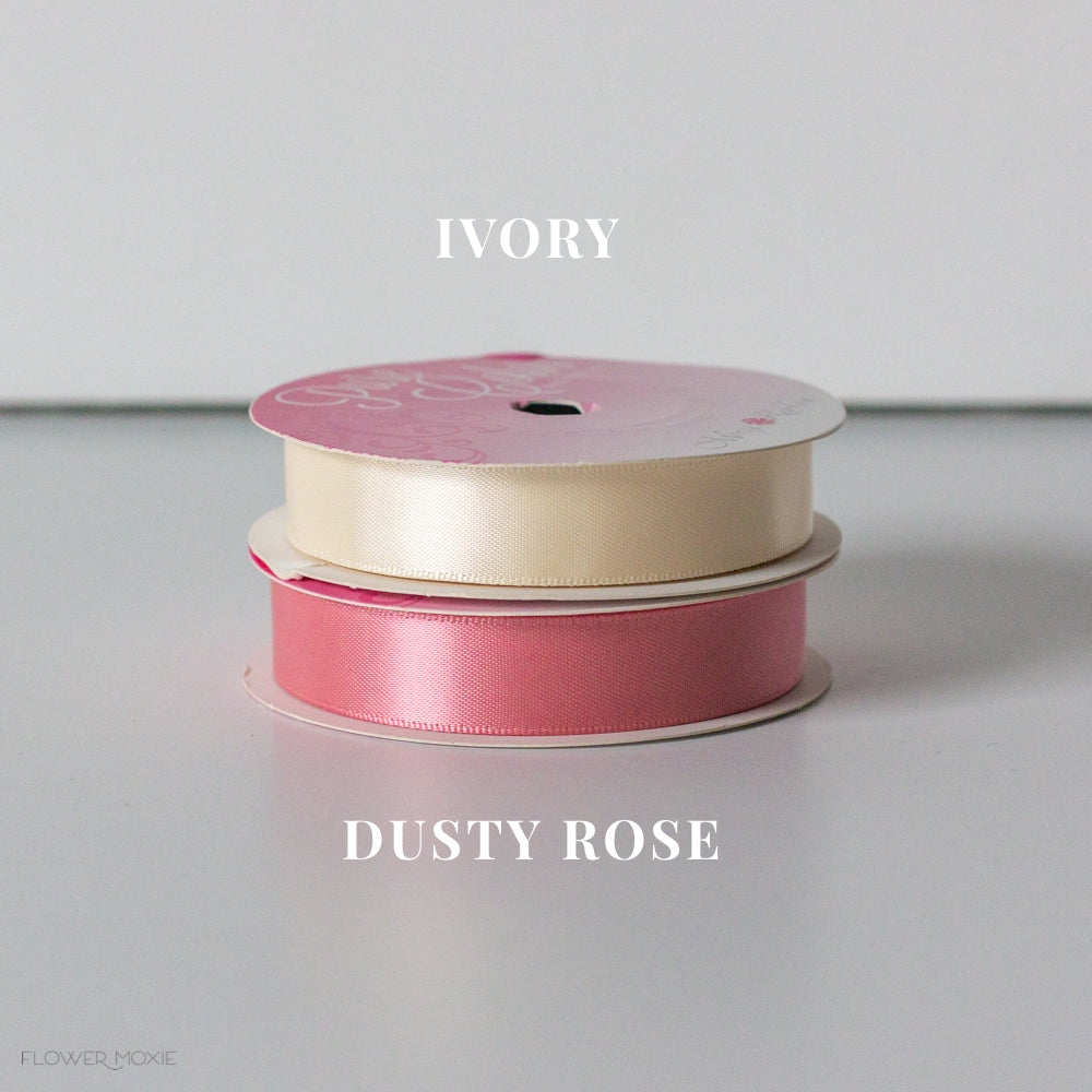 Ivory 5/8" satin-faced ribbon looks beautiful with many of our DIY Collections and Packages. Use a single color or two complimentary colors to pull your design together! We recommend using approximately 3-4" of ribbon per bout or pin-on corsage.