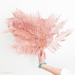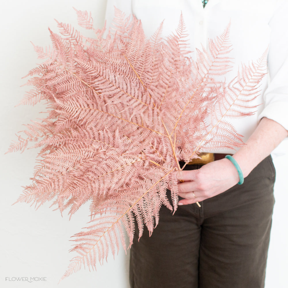 Preserved Pink Leatherleaf Fern is perfect for any bride wanting that beautiful dusty pink color with a twist! These stems are large and full, but can be clipped to fit in bouquets, boutonnieres, centerpieces, and more!