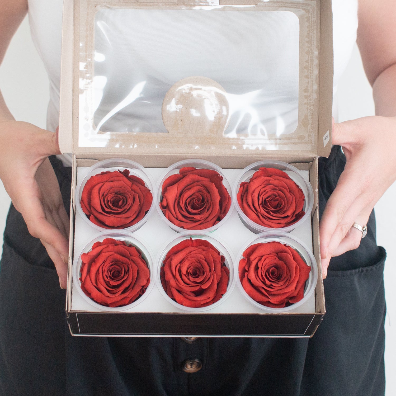 Care: Preserved roses do not need water and will last for at least a year with proper care. Store away from sunlight and in a cool, dry environment.
