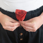 Preserved roses look just like fresh roses, have a consistent color, and are a stunning addition to any arrangement! Preserved rust roses are durable, easy to work with, can be purchased in advance of your event, and can be saved as a sentimental keepsake.