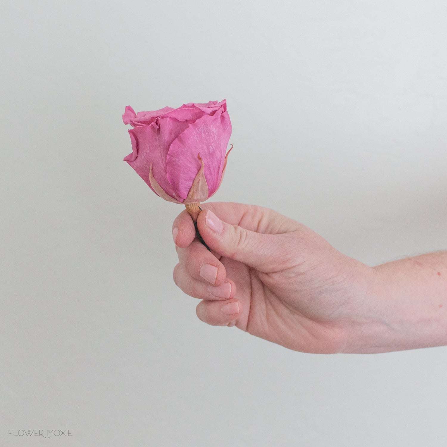 Special Note: Preserved roses have the head only; you will need to attach a stem made of wire and floral tape.  Click here for a guide on using preserved roses.