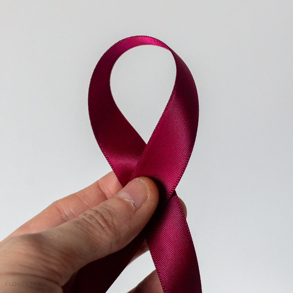 Wine 5/8" satin-faced ribbon looks beautiful with many of our DIY Collections and Packages. Use a single color or two complimentary colors to pull your design together! We recommend using approximately 3-4" of ribbon per bout or pin-on corsage.